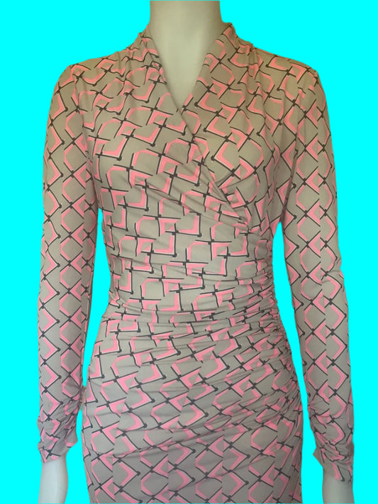Augustine - Slim Fitting Pink & Grey Patterned Dress - Size: XS