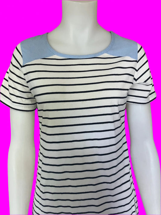 Addison - Striped and Blue Feature Maternity Dress - Size: 8