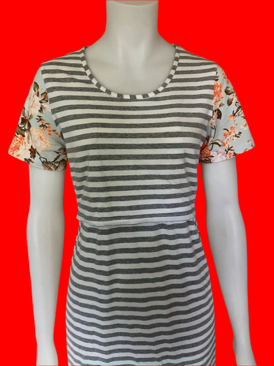 Addison - Floral and Stripe Breastfeeding & Maternity Dress - Size: 8