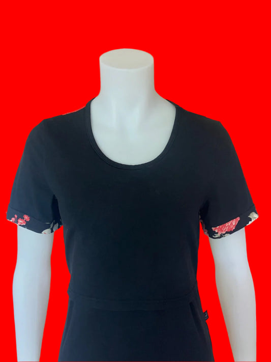Addison - Black Breastfeeding Tee With Rose Print - Size: 8