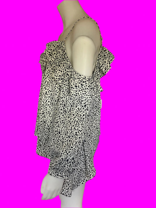 Augustine - Black & White Printed Top - Cold Shoulder and Frill Detailing - Size: M