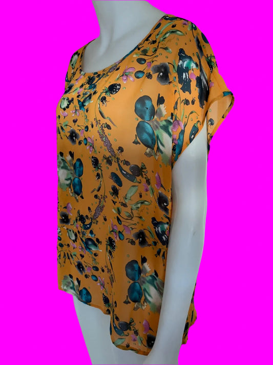 Ashley Fogel - NZ Designer - Vibrant Orange Top - Fruits - Size: 12